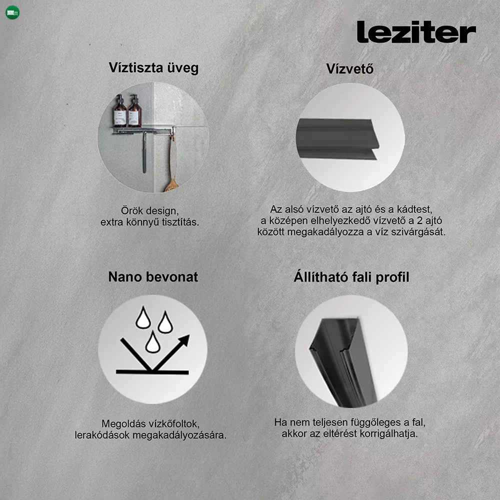 *Alsó vízvető: Az alsó vízvető megakadályozza a víz szivárgását tusolás közben.