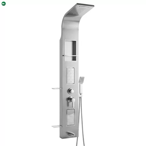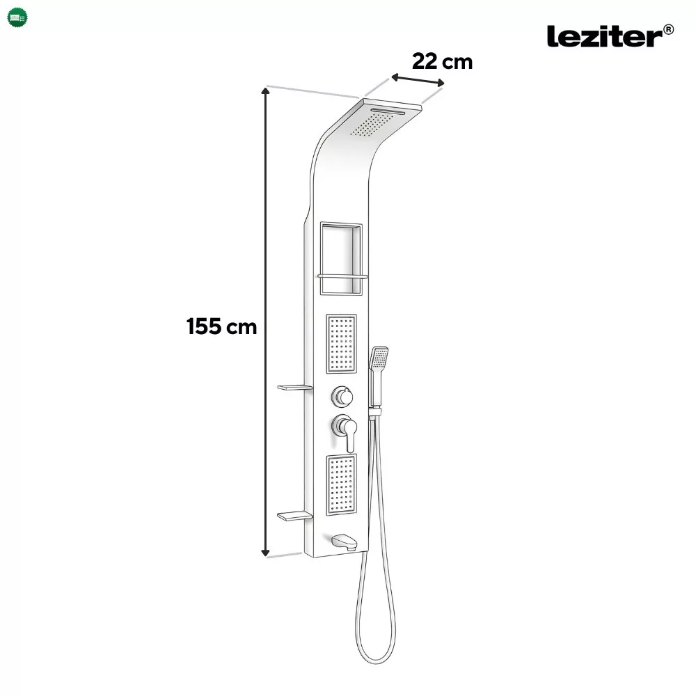 Az ANGEL hidromasszázs zuhanypanel egy lenyűgöző és praktikus megoldás a fürdőszobába, amely eleganciával és kényelemmel tölti meg a zuhanyzás élményét. Ez a zuhanypanel minden szempontból kiváló minőséget és fejlett funkciókat kínál, hogy a fürdőzés valódi élvezetté váljon. A zuhanypanel méretei 155 x 22 x 7 cm, ami lehetővé teszi a könnyű telepítést és a kényelmes használatot. Az ergonomikus dizájn és a méretarányos kialakítás gondoskodik arról, hogy ez a zuhanypanel harmonikusan illeszkedjen a fürdőszobai környezetbe, és helytakarékos megoldást nyújtson.