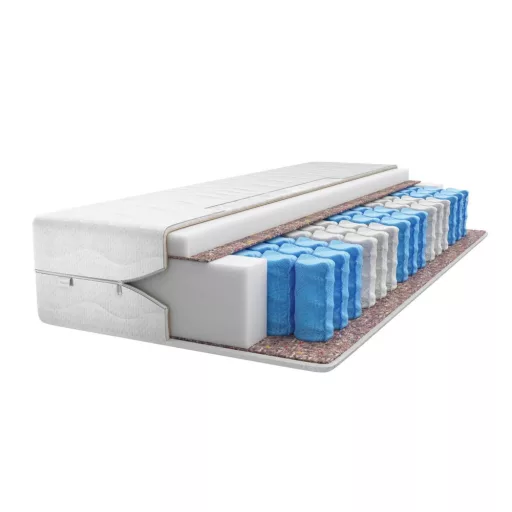 A matrac fő rétege zsebrugókból áll, amelyek a 7 KEMÉNYSÉGI ZÓNÁNAK köszönhetően tökéletes alkalmazkodást biztosítanak a felhasználó alakjához. Minden rugó külön zsebben található, lehetővé téve a terhelésre való független reagálást. A matracban használt szerkezet biztosítja a megfelelő szellőzést. A matrac felső rétegére poliuretán habot használtak, amely megfelelő alátámasztást biztosított a gerinc teljes hosszában. A legmagasabb minőség és az ügyfelek elégedettsége érdekében a matracok gyártásához HYPOALLERGENIC anyagokat használunk . Az általunk használt alapanyagok csökkentik a poratkák kialakulásának lehetőségét, ami lehetővé teszi az allergiások nyugodt alvását.
