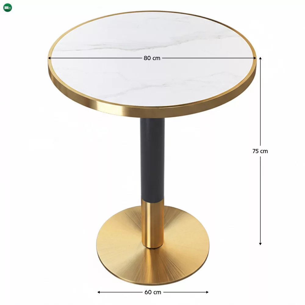 Bisztró asztal étkezőbe, fehér márvány/fekete/arany, átmérő 80 cm, OREN