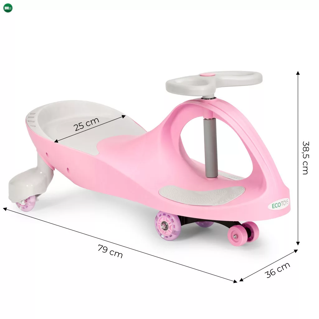 Az ECOTOYS forgó autó nagyszerű játék még a legkisebb gyermekek számára is. A kisgyermekek energiájukat felhasználva mozgásba hozzák az autókat anélkül, hogy a lábaikat kellene használniuk. A speciális vezetési rendszer lehetővé teszi a gyermek számára, hogy a kormánykerék váltakozó balra-jobbra mozgatásával mozogjon. Az ilyen móka **pozitív hatással** lesz gyermeked motoros fejlődésére és egyensúlyérzékére.