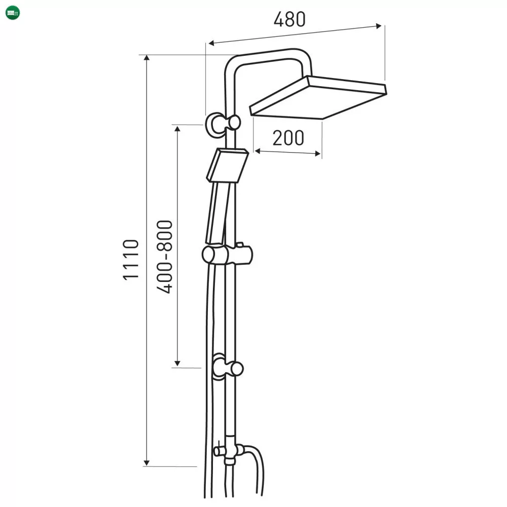 - Zuhanyzó: felső 20 × 20 cm (anticalc) és kézi 1 fúvóka (anticalc)