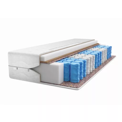 A matrac fő rétege zsebrugókból áll, amelyek a 7 KEMÉNYSÉGI ZÓNÁNAK köszönhetően tökéletes alkalmazkodást biztosítanak a felhasználó alakjához. Minden rugó külön zsebben található, lehetővé téve a terhelésre való független reagálást. A matracban használt szerkezet biztosítja a megfelelő szellőzést. A szerkezetet az egyik oldalon COCONUT MAT-tal merevítették , növelve a stabilitását. A matrac felső rétegére poliuretán habot használtak, amely megfelelő alátámasztást biztosított a gerinc teljes hosszában. A legmagasabb minőség és az ügyfelek elégedettsége érdekében a matracok gyártásához HYPOALLERGENIC anyagokat használunk . Az általunk használt alapanyagok csökkentik a poratkák kialakulásának lehetőségét, ami lehetővé teszi az allergiások nyugodt alvását.