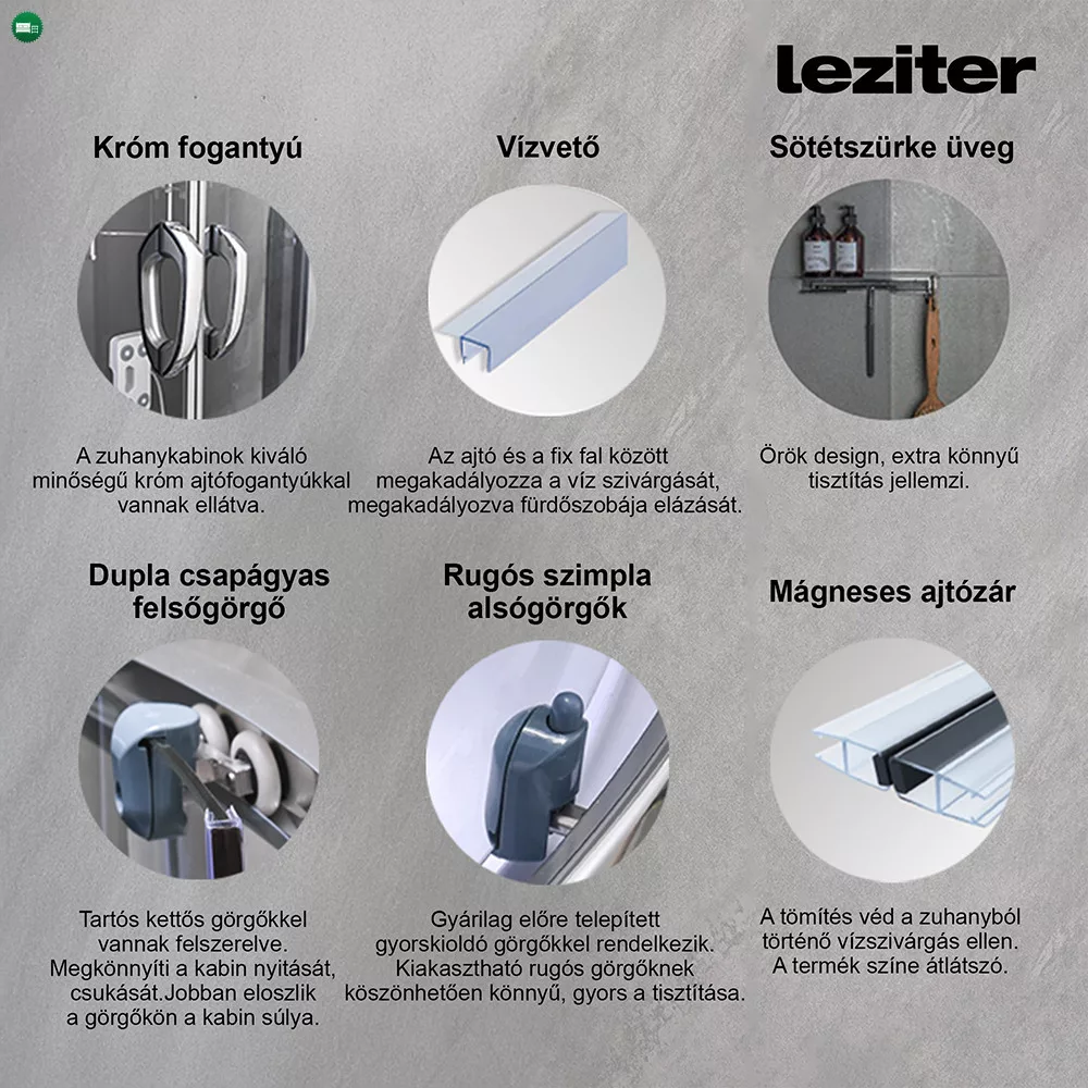 | Középső panel | PVC festett ezüst | Zuhanytálca anyag | ABS |