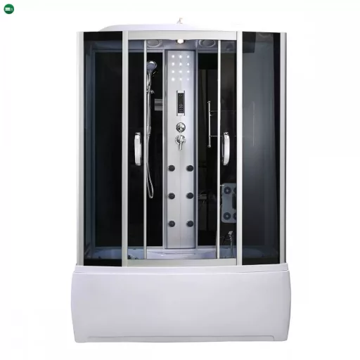 Emilia 85x150 cm hidromasszázs kádkabin elektronikával - Black