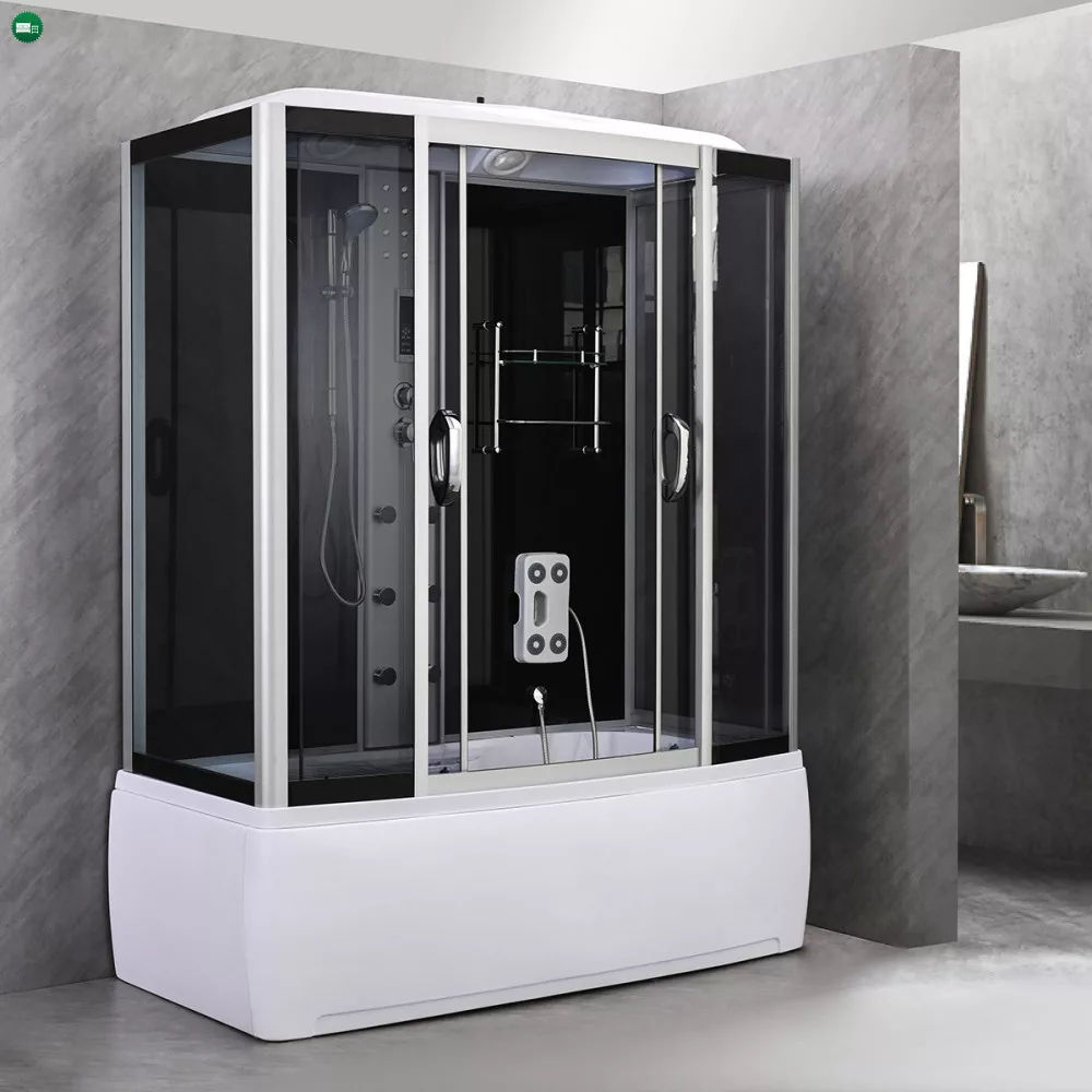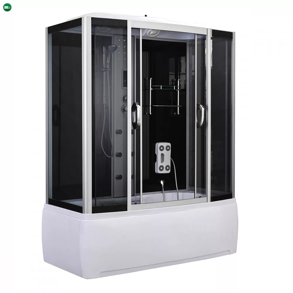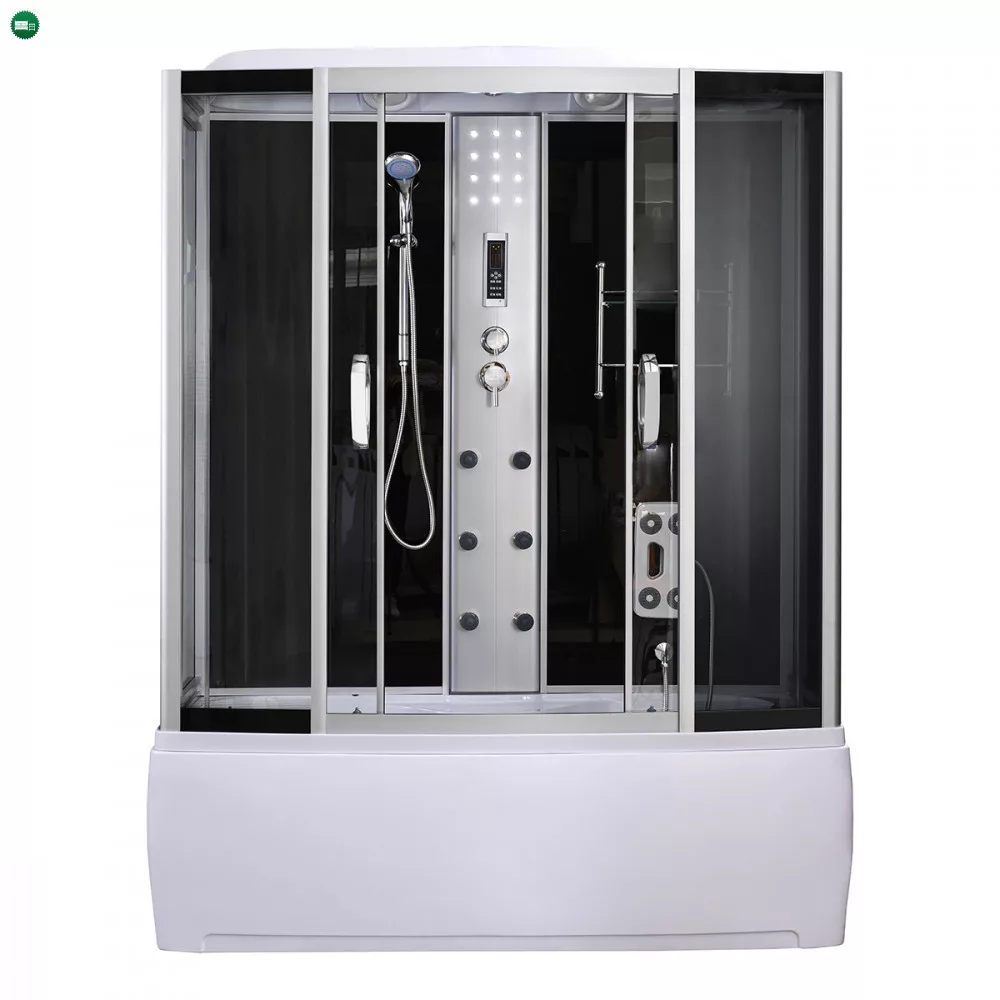 A kabint 5 mm vastag edzett biztonsági üveg veszi körül, amely sötétszürke fix üveg- és ajtópanelekkel, illetve fekete üvegfalakkal fokozza az esztétikai megjelenést. A matt króm vezetősínek és profilok tovább emelik a termék eleganciáját, míg a matt króm funkciópanel a vezérlési lehetőségek középpontjában áll. A kabin 6 hidromasszázs fúvókával rendelkezik, amely garantálja az egész testet átölelő masszázsélményt, miközben a beépített rádió, ventilátor, LED háttérvilágítás és felső világítás tovább fokozza a relaxáció élményét.