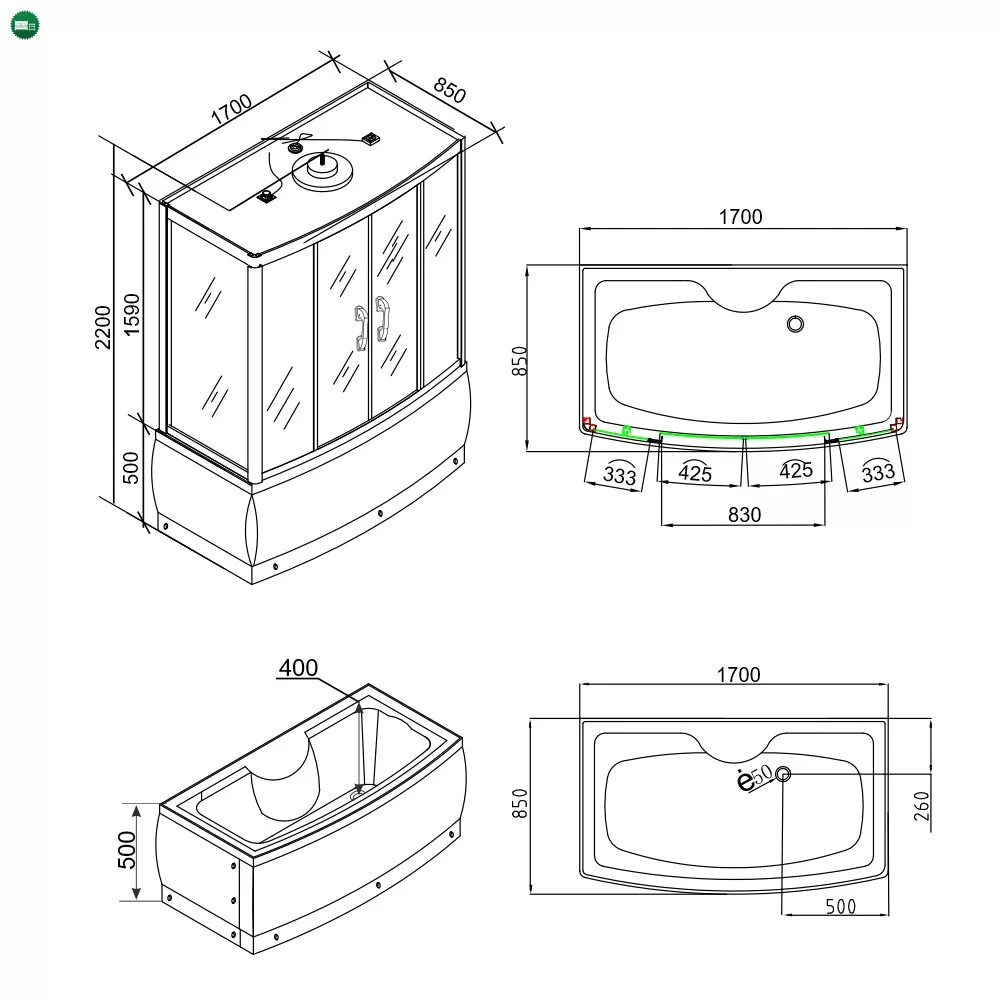 | Középső panel | PVC festett ezüst | Zuhanytálca anyag | ABS |