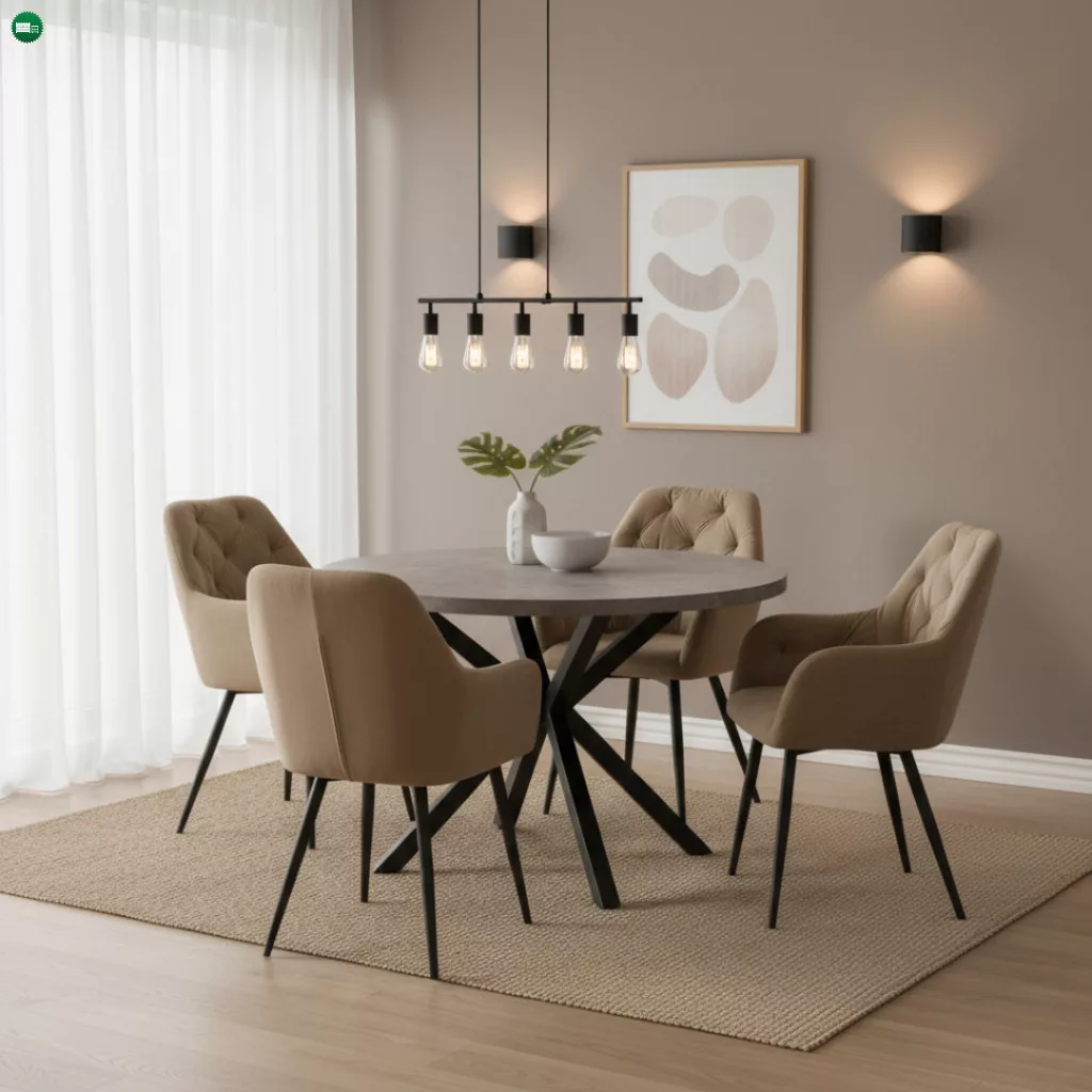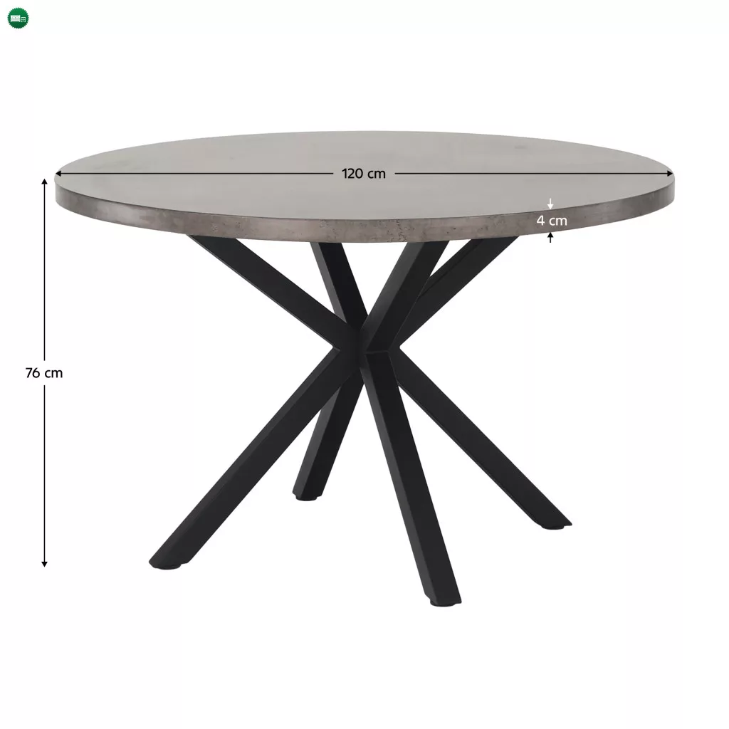 Étkezőasztal, beton/fekete, átmérő 120 cm, MEDOR