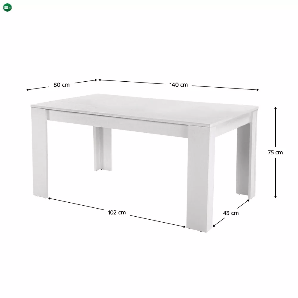 Asztal felülete:140x80 cm, ideális 4 - 6 fő számára