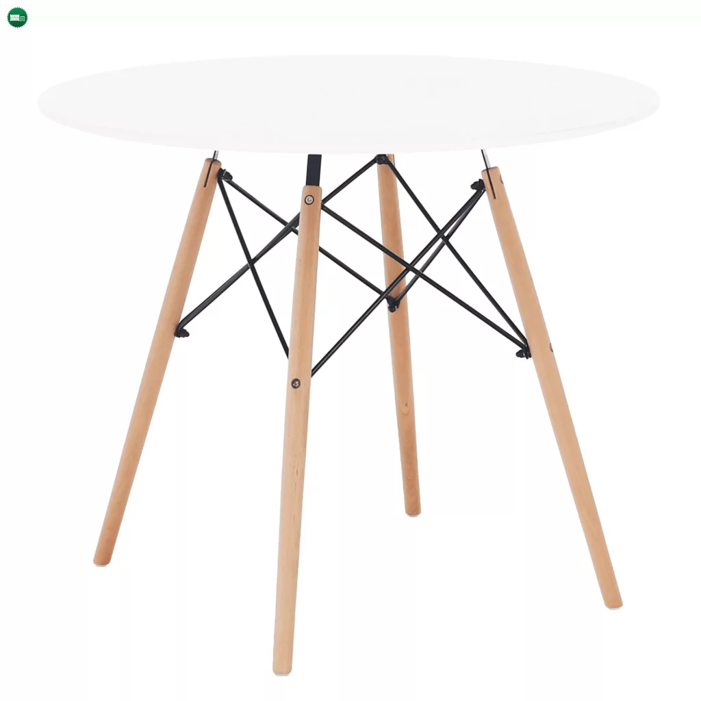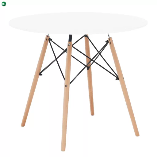 Étkezőasztal,  fehér/bükk, átmérő 90 cm, GAMIN 2 NEW 90