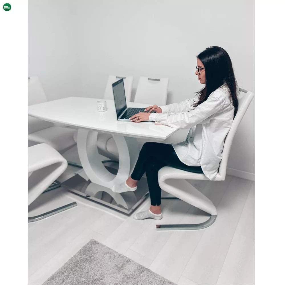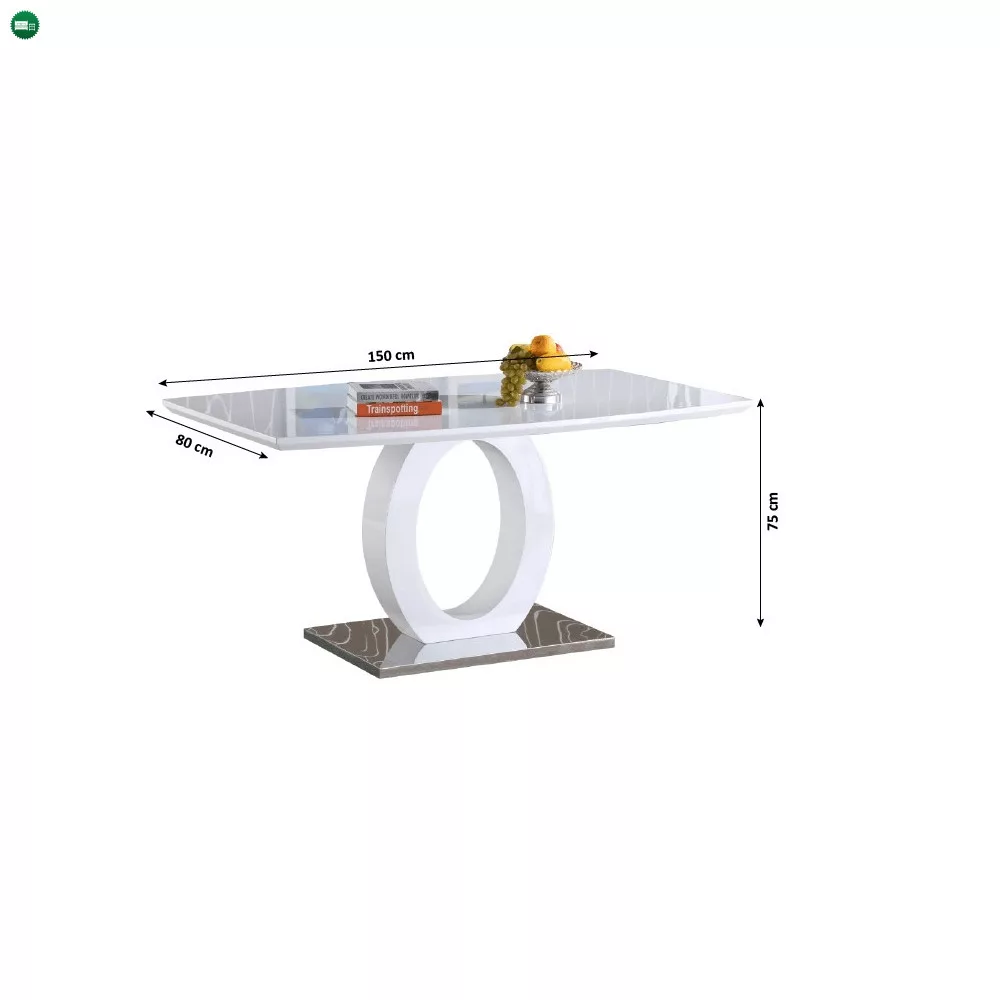 Étkezőasztal, fehér magas fény/acél, 150x80 cm, ZARNI