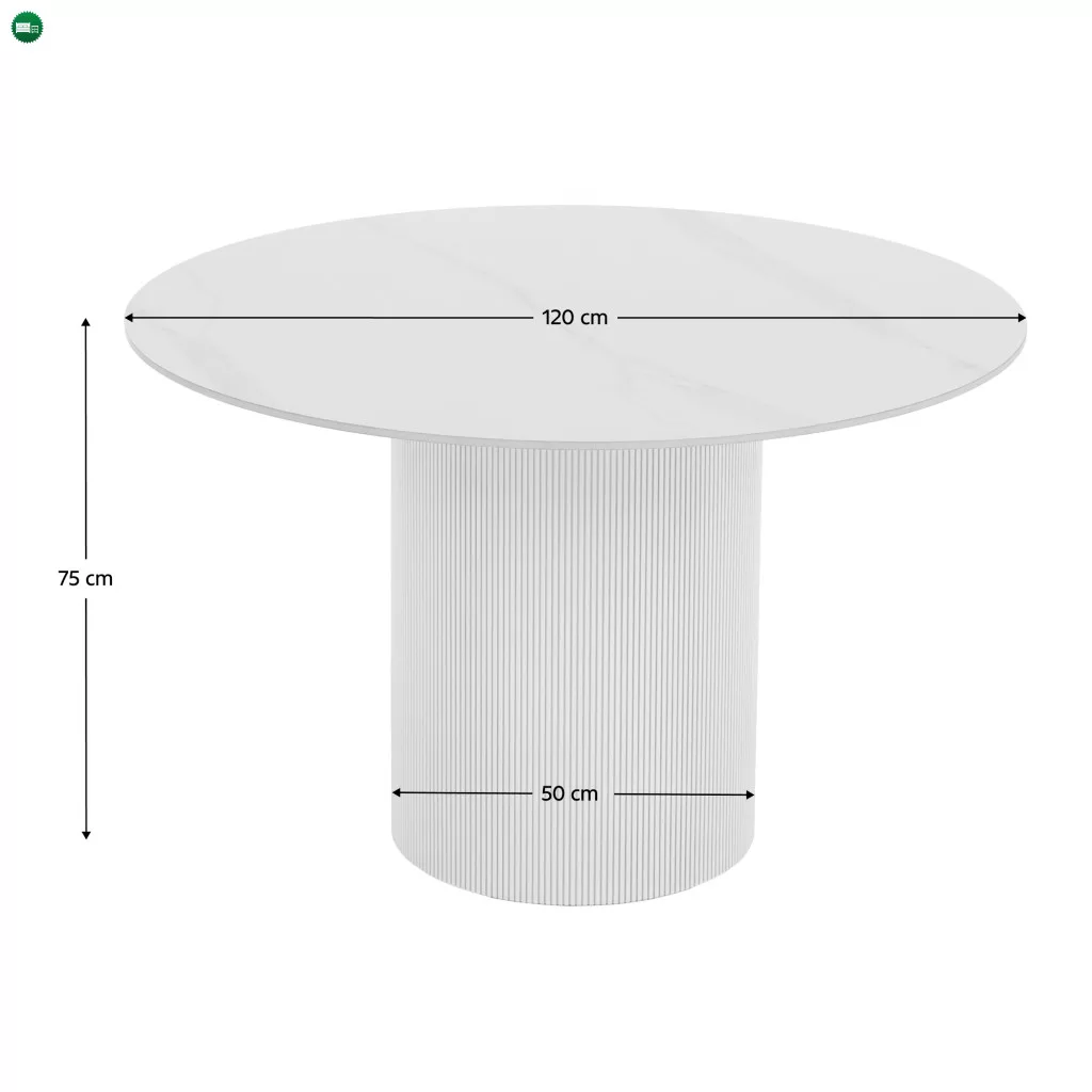 Étkezőasztal, fehér márvány/MDF, átmérő 120 cm, MAHIR TYP 1