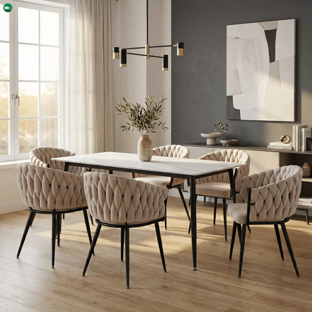 Étkezőasztal, fehér márvány/fekete, 160x80 cm, FLORENC TYP 2
