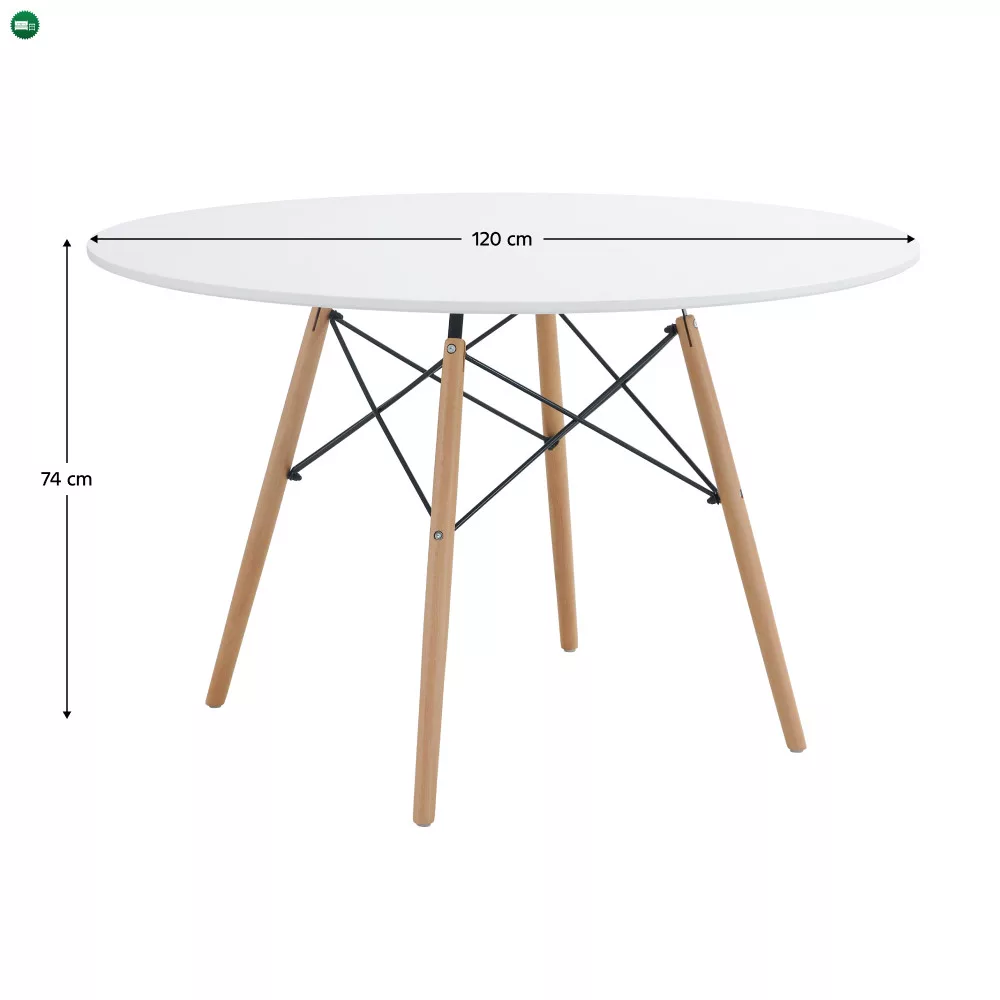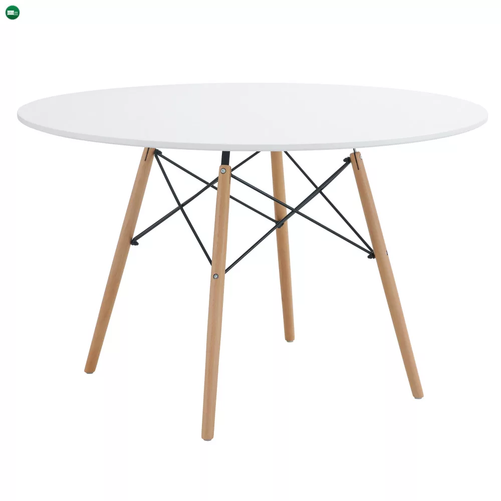 Étkezőasztal, fehér/matt/bükk, átmérő 120 cm, DEMIN NEW