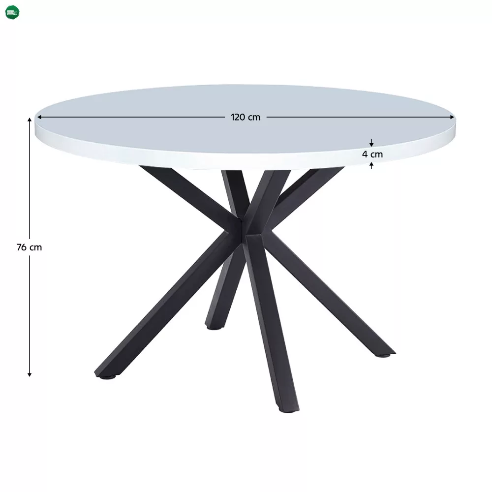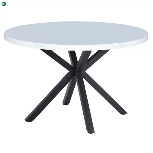 Étkezőasztal, fehér matt/fekete, átmérő 120 cm, MEDOR