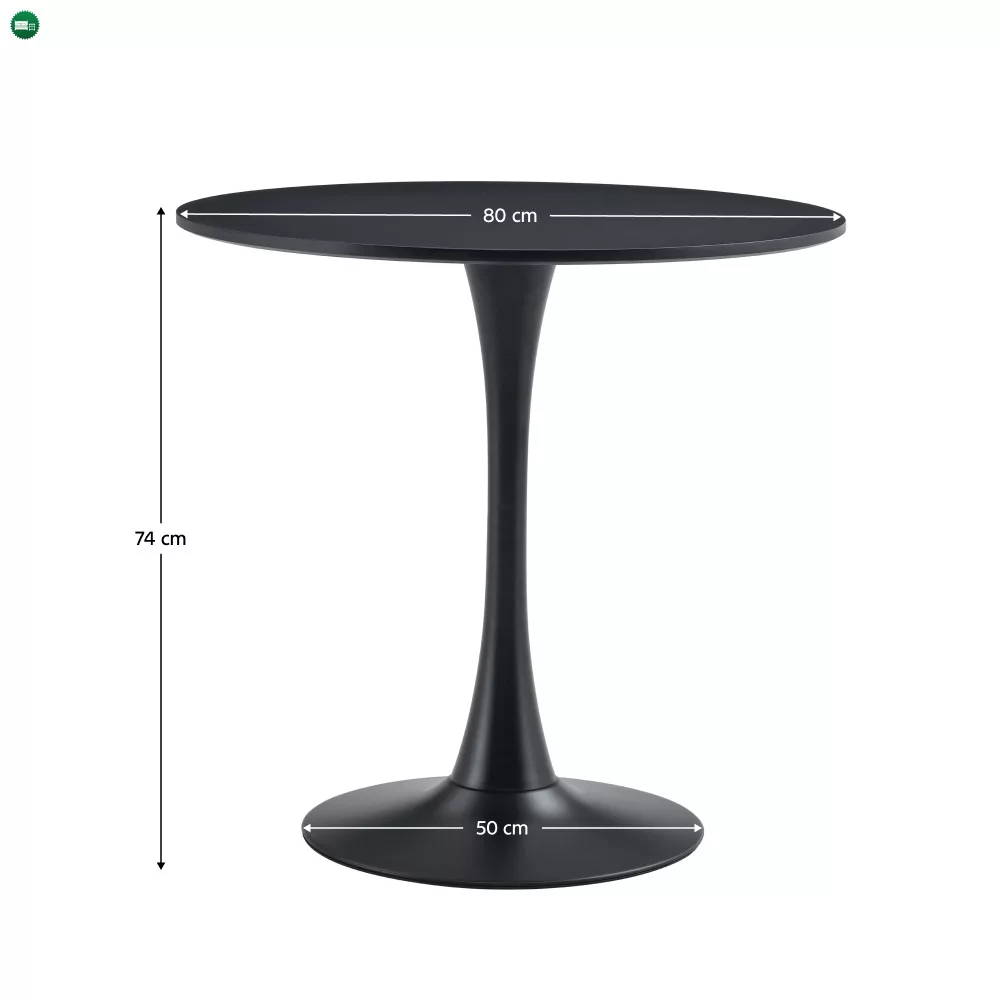 Étkezőasztal, fekete, átmérő 80 cm, REVENTON NEW