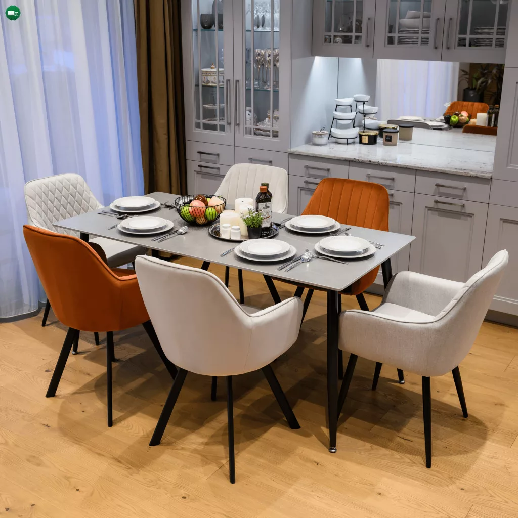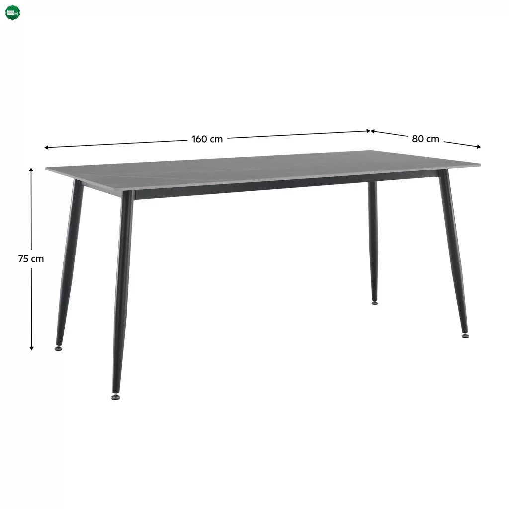 Étkezőasztal, szürke márvány/fekete, 160x80 cm, FLORENC TYP 2