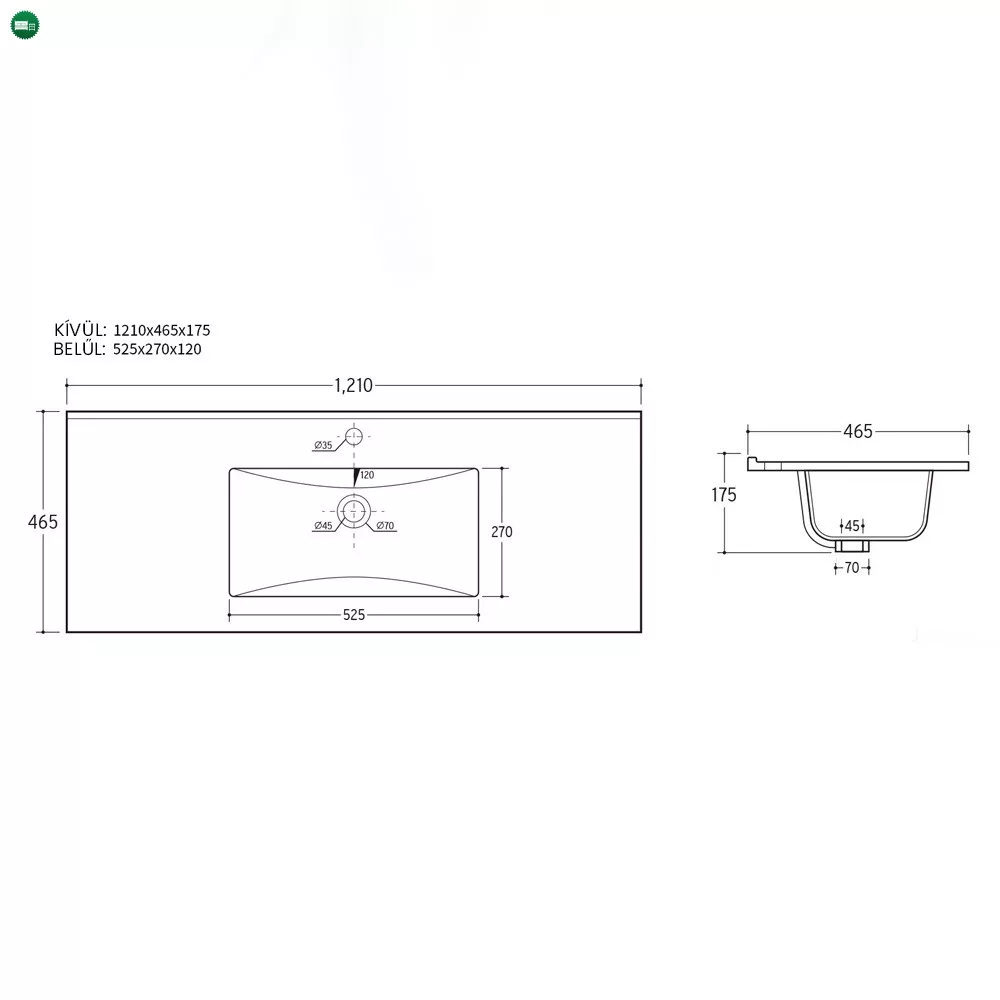 V955 - Flat Design 1 medencés mosdó 18x120x46 cm