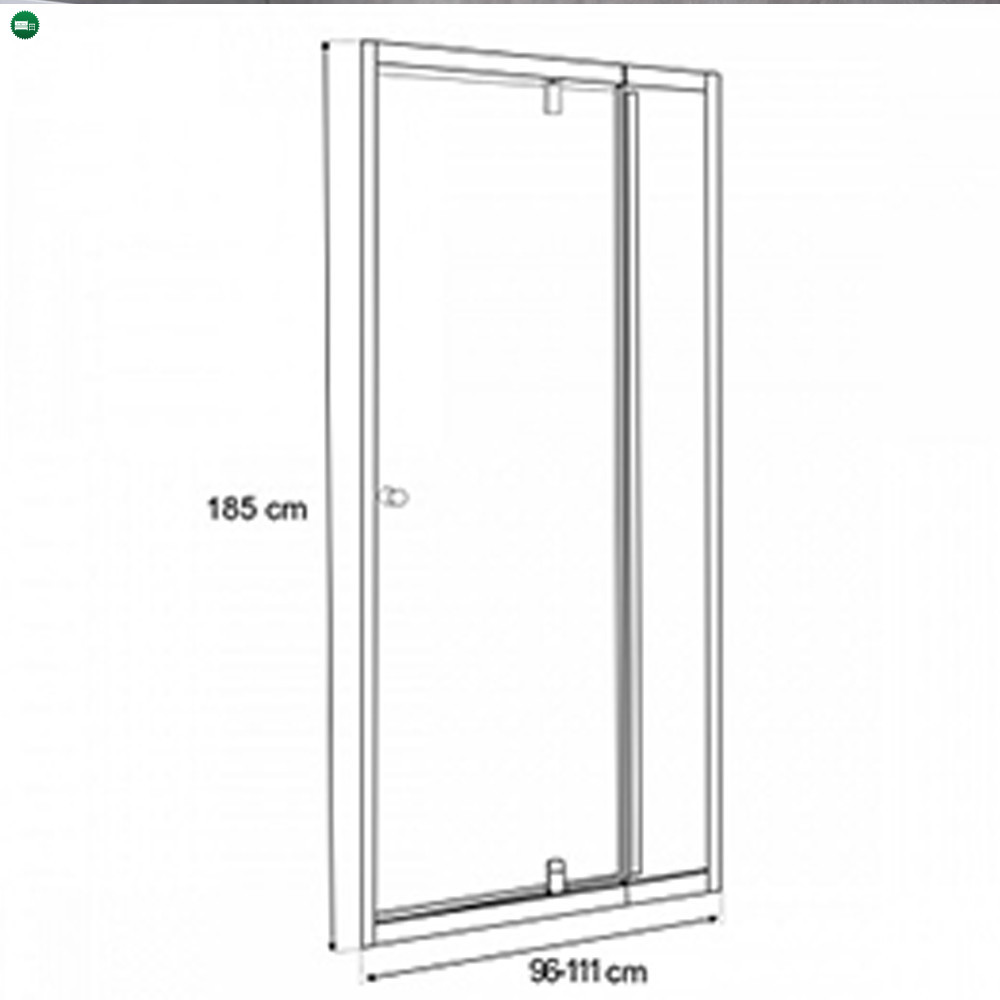 Önmagában is beépíthető zuhanyajtó, 96-111 cm között állítható a szélessége, 6mm-es biztonsági víztiszta üveggel, krómozott alumínium profilokkal és ajtófogantyúval rendelkezik.