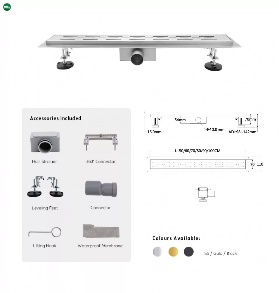 A Flow prémium rozsdamentes acél zuhanyfolyóka tökéletes választás fürdőszobájba. Rozsdamentességének köszönhetően nem szineződik el és éveken keresztül használhatjuk problémanetesen. Több méretben is kapható a termék.