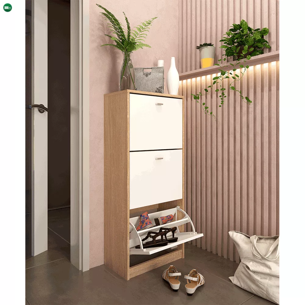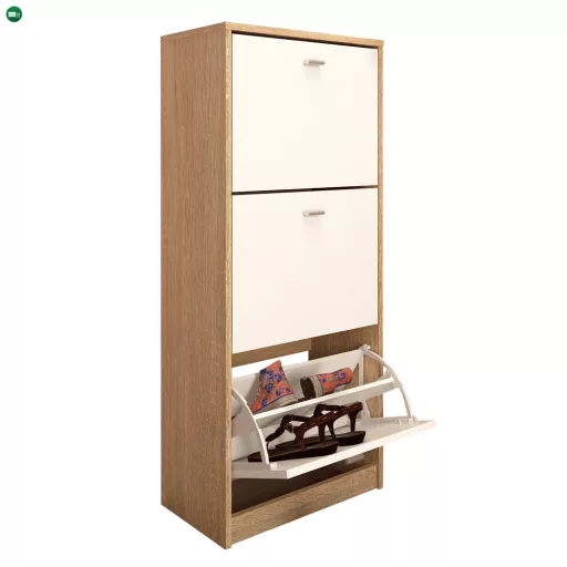 Háromrészes cipősszekrény, tölgy sonoma/fehér, VIVAT NEW TYP 2