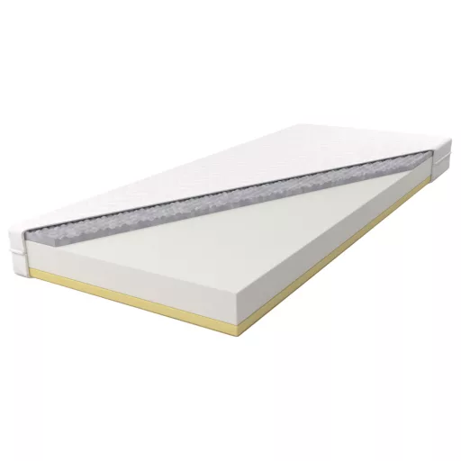 A matrac KÉTOLDALAS . A két felület használatának lehetősége jelentősen meghosszabbítja élettartamát. A matrac fő rétege HYPOALLERGENIC poliuretán hab, amely gátolja a baktériumok és mikroorganizmusok szaporodását. Megnövelt keménységének és nagy rugalmasságának köszönhetően rendkívül tartós. A poliuretán habbetét stabil alátámasztást tesz lehetővé a test teljes hosszában. Egyrészt a felső rétegben VISCO termoelasztikus habot használtak , az ún lusta hab, amely alkalmazkodik az alakhoz a hőmérséklet és a nyomás hatására. A Visco enyhíti a nyak, a gerinc és a vállak feszült izmait, ellazítja őket, így kényelmes alvást tesz lehetővé. A termoelasztikus habot a decubitus megelőzésére használják. A másik oldalon, a felső rétegen egy MOLET hab található, számos kiemelkedéssel, mélyedésekkel, amelyek nyomás hatására összeesnek, és terheletlen helyeken a testfelülethez tapadnak. A Molet hab mikromasszírozó hatású , jelentősen javítja a vérkeringést.