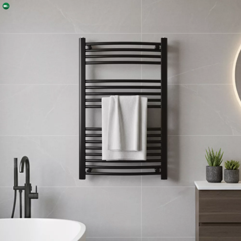 Válaszd a Leziter íves törölközőszárító radiátor 1000x600 mm fekete modellt, és élvezd nap mint nap a kellemes meleget, a gyorsan száradó törölközőket és a modern, prémium megjelenést a fürdőszobádban!