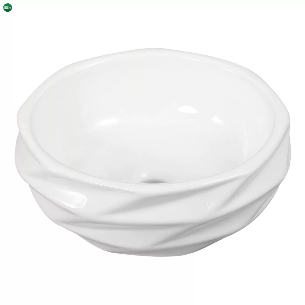 KR-01 kerámia design mosdó – kerek, 40 × 40 × 15 cm, pultra szerelhető