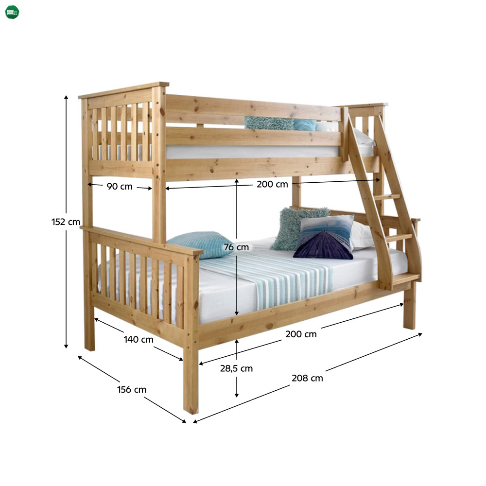 Kinyitható emeleteságy, természetes tűnyalábos fenyő, LUINI