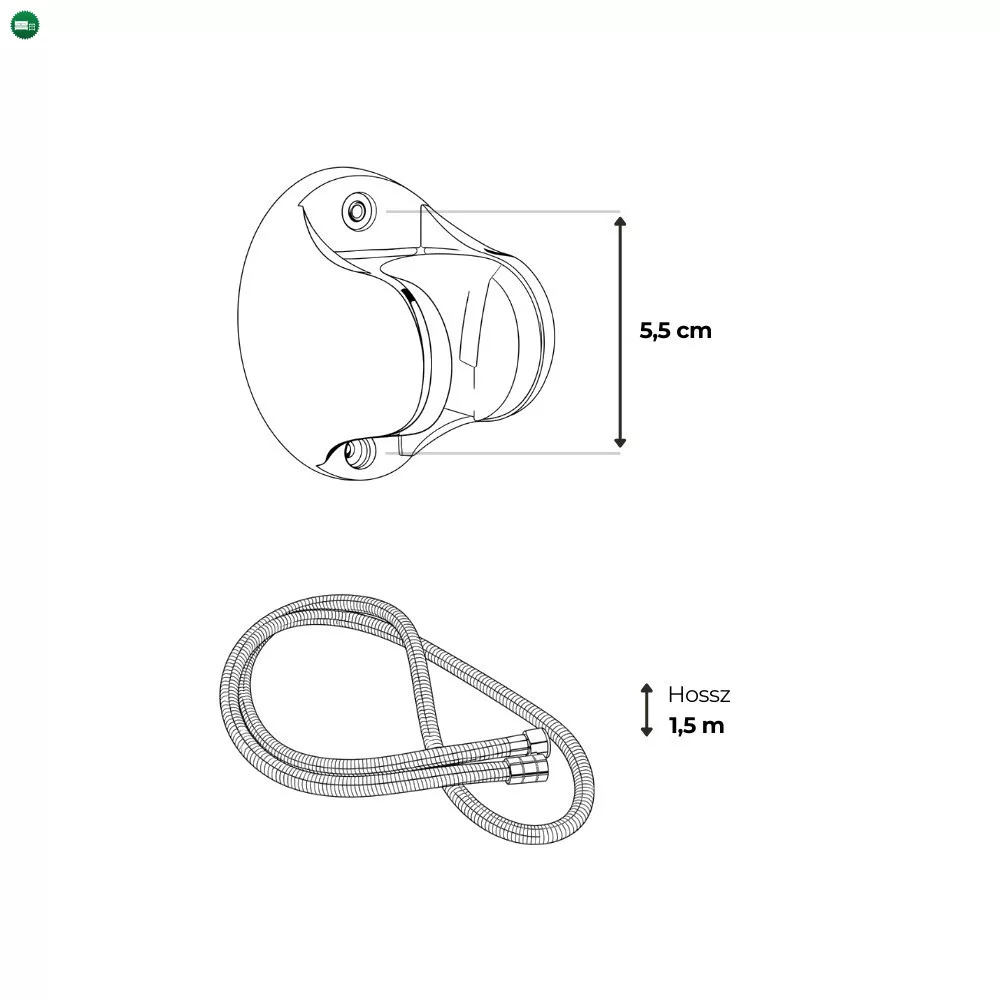 A 1,5 méter hosszú, rozsdamentes acél zuhanytömlő megfelelő mozgásteret biztosít a kényelmes használathoz. A sárgaréz csatlakozó stabil, szivárgásmentes illeszkedést nyújt, amely elősegíti a problémamentes, hosszú távú használatot.