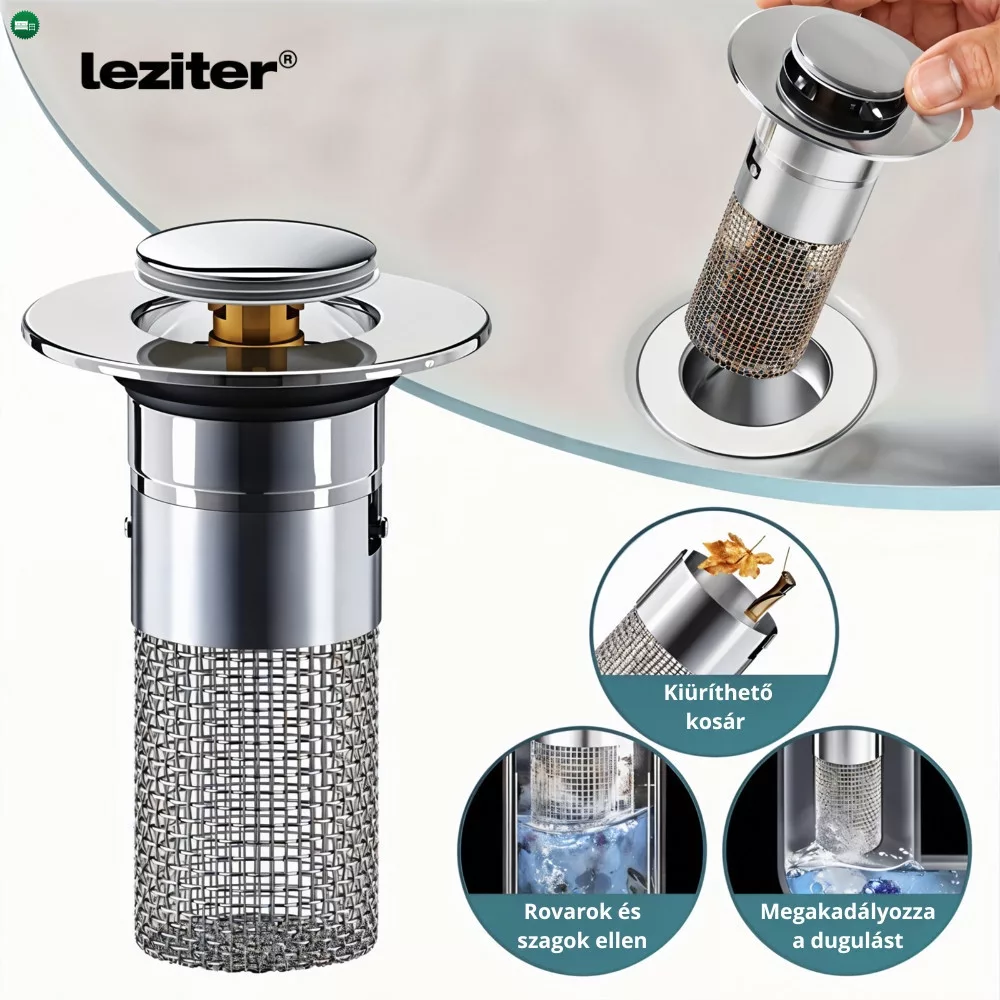 A kétszintű szűrőrendszer nemcsak felfogja a szennyeződéseket, de lehetővé teszi, hogy értéktárgyaid (pl. fülbevaló vagy gyűrű) ne vesszenek el a lefolyóban. A tisztítás egyszerű: csak emeld ki a szűrőt, öblítsd le, és már kész is vagy!