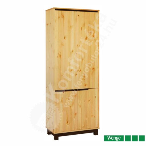 A Lexa nagy szekrény 4 ajtós akasztós változata a modern stílust és a letisztult eleganciát ötvözi. Fogantyú nélküli kialakítása és tágas belső tere praktikusságot és esztétikát egyaránt kínál. Ideális választás azok számára, akik szeretik a tágas tárolótereket, és fontos számukra a bútorok letisztult megjelenése. A tömör fenyőből készült szekrény kérhető lakkozattal, és választható színekkel rendelhető, beleértve a szürke, fehér, dió és wenge árnyalatokat is.