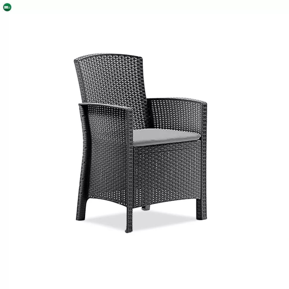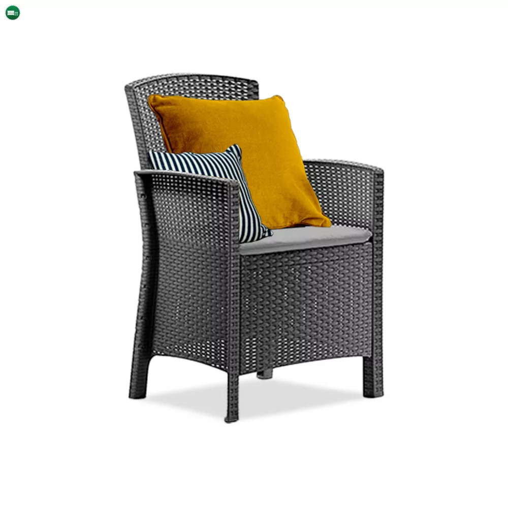 Ez egy igazán elegáns és kényelmes kerti szék, kompletten párnával ellátva. A grafit szín és az eredeti, rattanra emlékeztető felület a legtöbb felhasználó tetszését elnyeri. Tartós, az időjárás viszontagságainak és az UV sugárzásnak ellenálló műanyagból készült. Könnyű tisztán tartani és nagyon egyszerű összeszerelni. A Lima Balcony szettünkkel, vagy más kerti bútorainkkal jól kombinálható bútordarab.