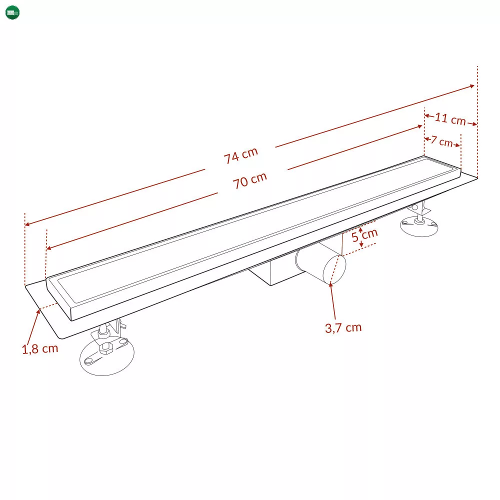 A Linea prémium minőségű rozsdamentes acél zuhanyfolyóka tökéletes választás fürdőszobájba. Rozsdamentességének köszönhetően nem szineződik el, ennek köszönhetően évekig élvezhetjük használatát. Több méretben is kapható a termék. Burkolható fedlappal összeállított kivitel, ezáltal a zuhanylefolyóka a padló burkolattal megegyező lehet.