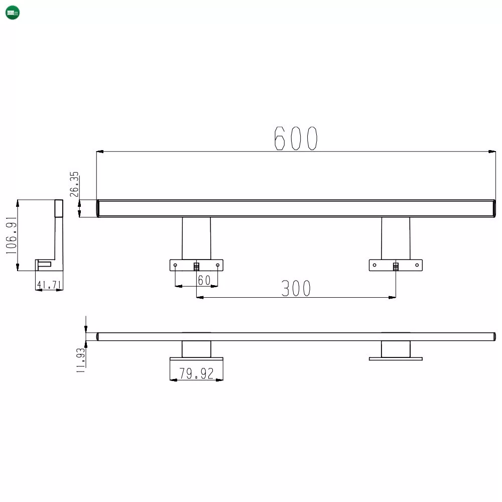 | Mérete | 600 mm x 105 mm x 42 mm |