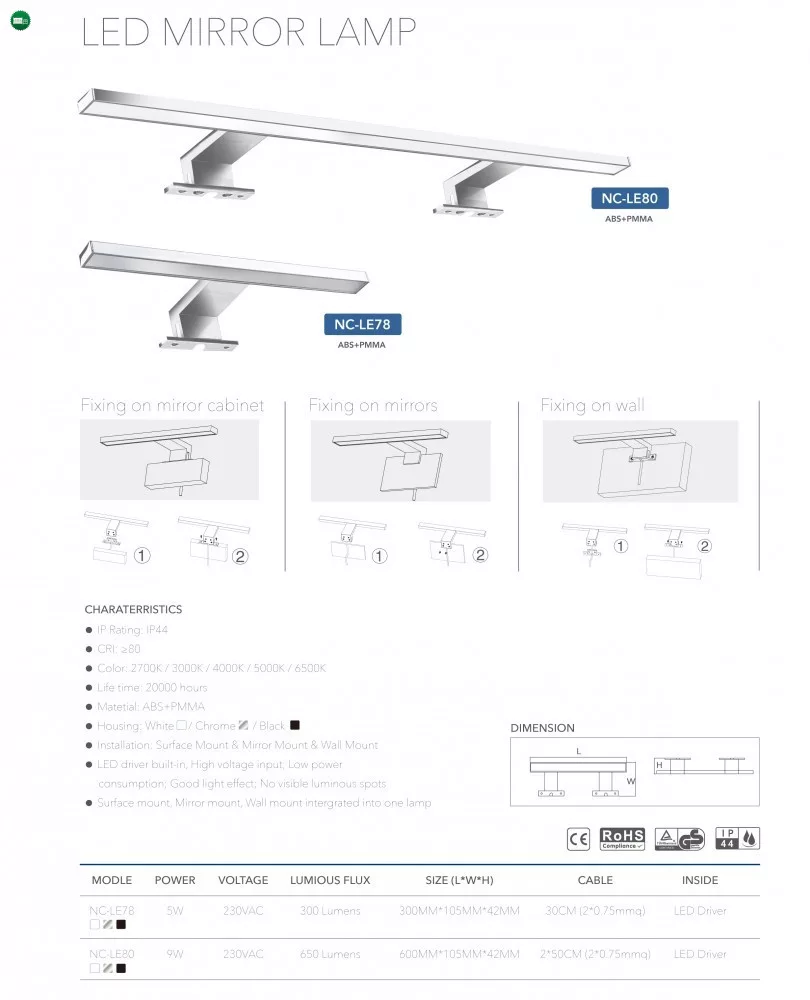 A Luxx led lámpa tervezésekor a modern és letisztult megjelenés volt a fő irányvonal. A lámpa teljesítménye 9 watt és 600 lumen, így könnyedén teremt elegendő fényt fürdőszoba szekrényünk környékére. Emellett a termék 230 voltos feszültségen üzemel. A termék anyagát tekintve remek minőségű műanyagból készült és króm bevonatot kapott. A lámpa rendkívül időtálló, a várható élettartama közel 20000 üzemóra. A kábel hosszúsága 50 cm, ezzel a távolsággal kell számolni a bekötéskor. A védelmi besorolása a terméknek IP44.