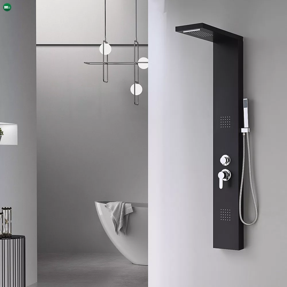 A Malaga Black hidromasszázs zuhanypanel egy lenyűgöző és modern megoldás a fürdőszobákban, amely luxus-élményt nyújt zuhanyzás közben. Ezt a zuhanypanelt kifejezetten a kényelemre és relaxációra tervezték, miközben funkciókban gazdag és stílusos kialakításával a fürdőszobai enteriőr részévé válik. A zuhanypanel mérete 145 x 20 X 7 cm. Az anyaga festett alumínium ötvözet, ami erős és tartós, miközben könnyű súlyú és hosszú távon is megőrzi esztétikus megjelenését. Ez a modern anyagválasztás garantálja a zuhanypanel hosszú élettartamát.