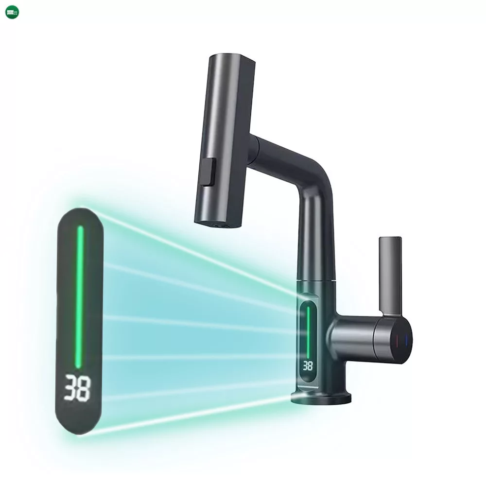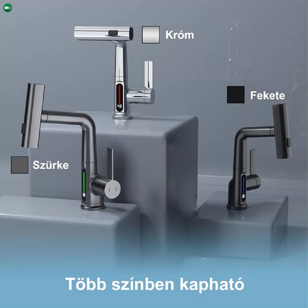 Van digitális hőmérséklet kijelző a csaptelepen? Igen, a csaptelep beépített digitális hőmérséklet kijelzővel rendelkezik, amely pontosan mutatja a víz hőmérsékletét különböző színekkel jelezve: kék (0-30°C), zöld (30-40°C) és piros (40-49°C).