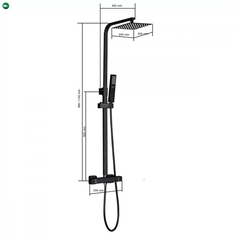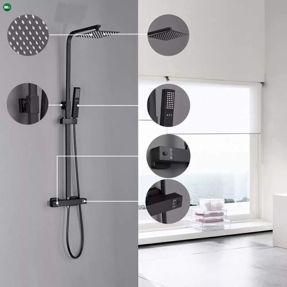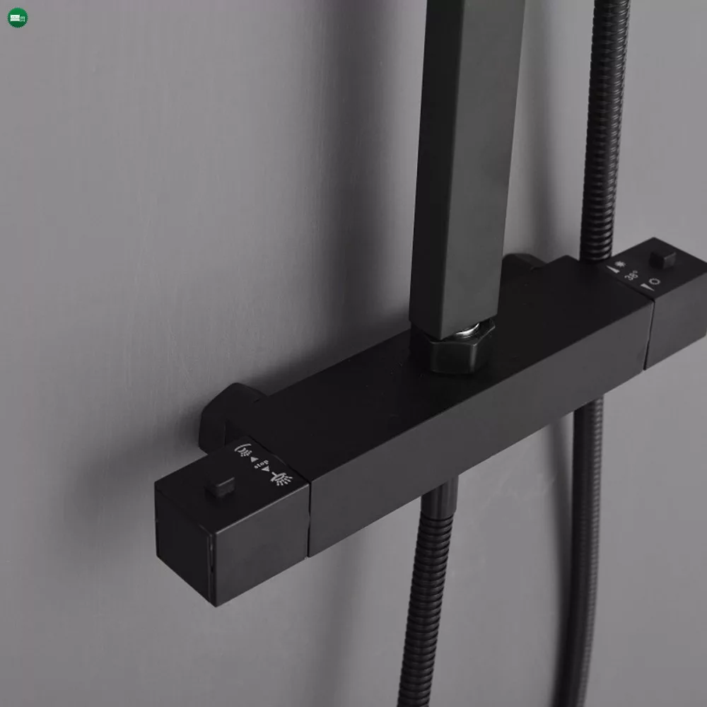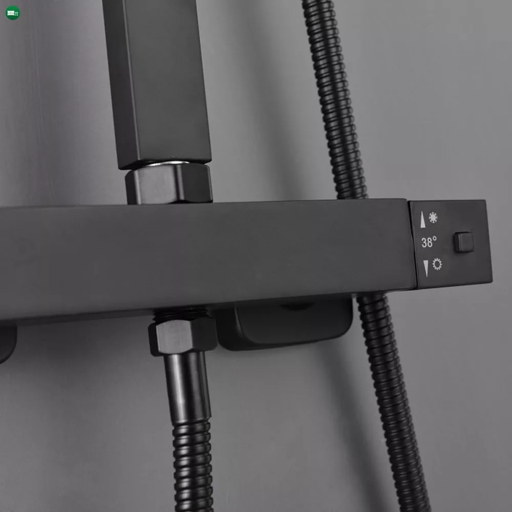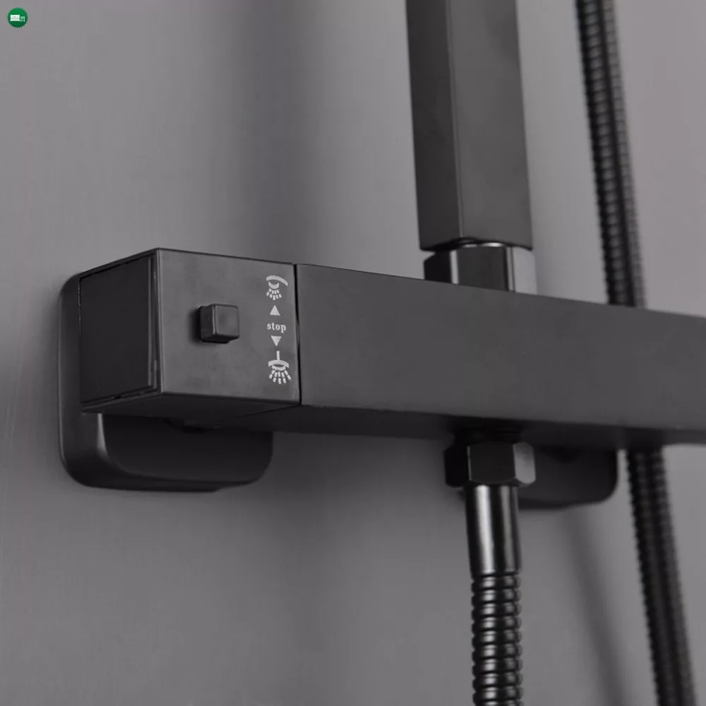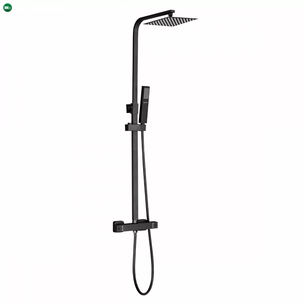 A Mazama black termosztátos zuhanyszett minden képzeletet felülmul funkcionalitása és letiszult formájának köszönhetően. A Mazama zuhanyszetthez jár egy mechanikus zuhany csaptelep hőmérséklet-keverővel, szabályozással és egy vízáram-kapcsoló az esőzuhany és a zuhanyfej közötti váltás érdekében. A kézi zuhanyfej, az 1,5 m-es zuhanytömlő és az esőztető ABS-ből készült,mely fekete színnel van borítva. A szett elegáns esőzuhanyt és zuhanyfejet tartalmaz. A zuhanyszett fekete teste rozsdamentes acélból lett létrehozva, magassága állítható (800-1200 mm).A zuhanyszettet a talajtól 85 cm-re ajánlott felszerelni. Ezzel a csapteleppel élvezet lesz a zuhanyzás. A megjelenésén kívül nagy előnye, hogy kézi zuhannyal és trópusi esőztetővel is fel van szerelve. A trópusi esőztető megkönnyíti a mindennapokat és még kellemesebbé varázsolja a tusolás élményét.