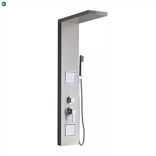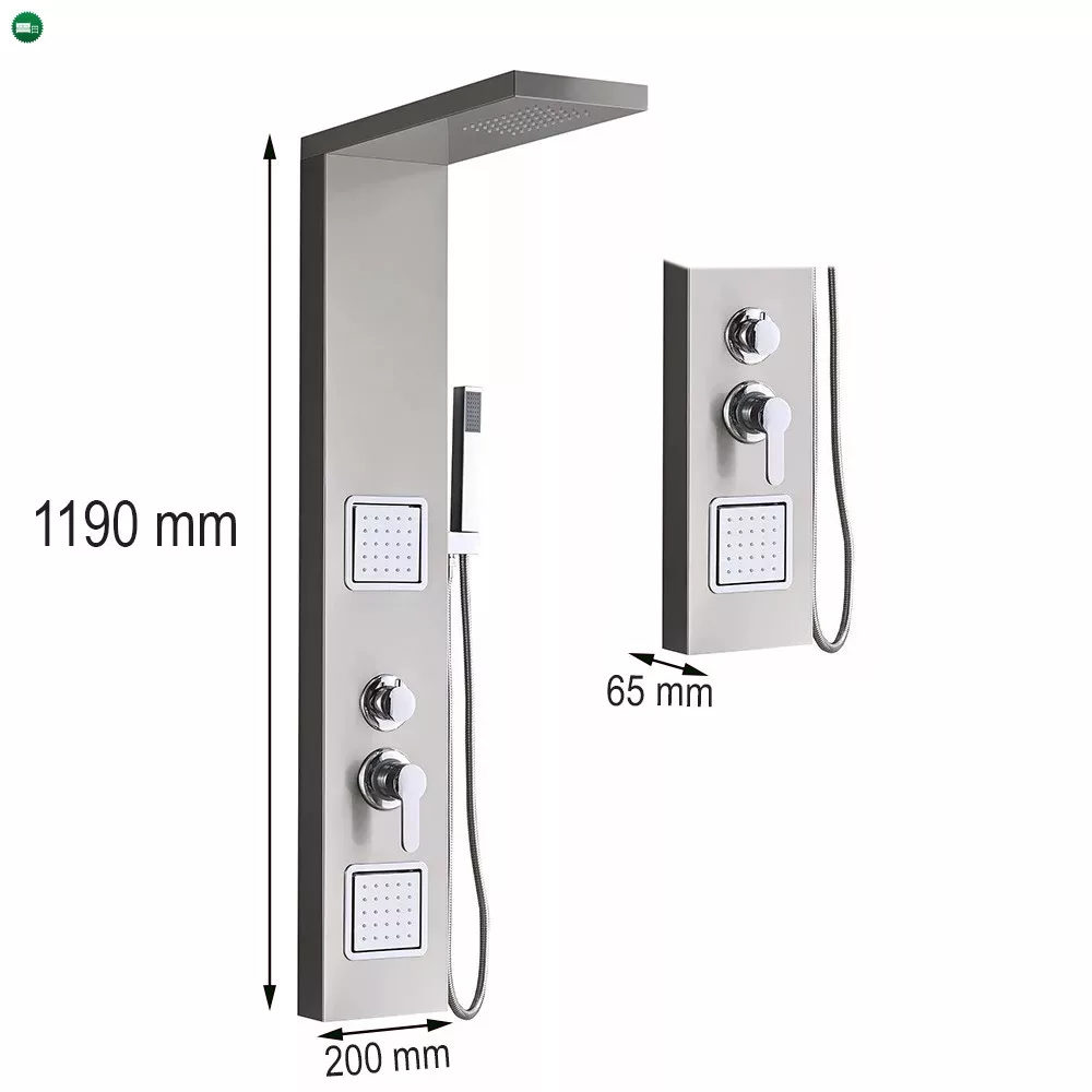 A Merino hidromasszázs zuhanypanel egy kiváló minőségű, modern és stílusos zuhanypanelegyüttes, amelyet az élménydús fürdőzés és zuhanyozás szerelmeseinek terveztek. A panel mérete 119x19x6,5 cm, ami ideális méretet biztosít a fürdőszobák számára, akár a nagyobb, akár a kisebb terekhez. Ez a zuhanypanel 0,8 mm vastagságú szálcsiszolt rozsdamentes acélból készült, ami nemcsak kiemelkedően tartós, de elegáns megjelenést is kölcsönöz a fürdőszobának. A szálcsiszolt felület finom és esztétikus, tovább fokozva a zuhanypanel vonzó megjelenését. A rozsdamentes acél anyagból készült zuhanypanel ellenáll a rozsda, a vízkő és a korroziónak, így hosszú élettartammal rendelkezik, és könnyen tisztán tartható.