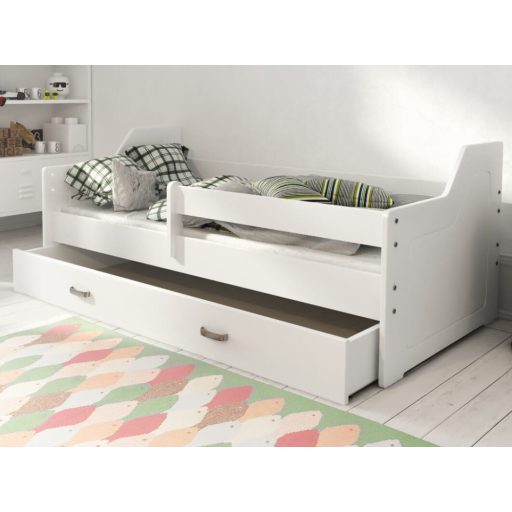 Az ágy tömör fenyőfából és kiváló minőségű MDF lapokból készült, biztosítva ezzel a hosszú élettartamot és megbízhatóságot.