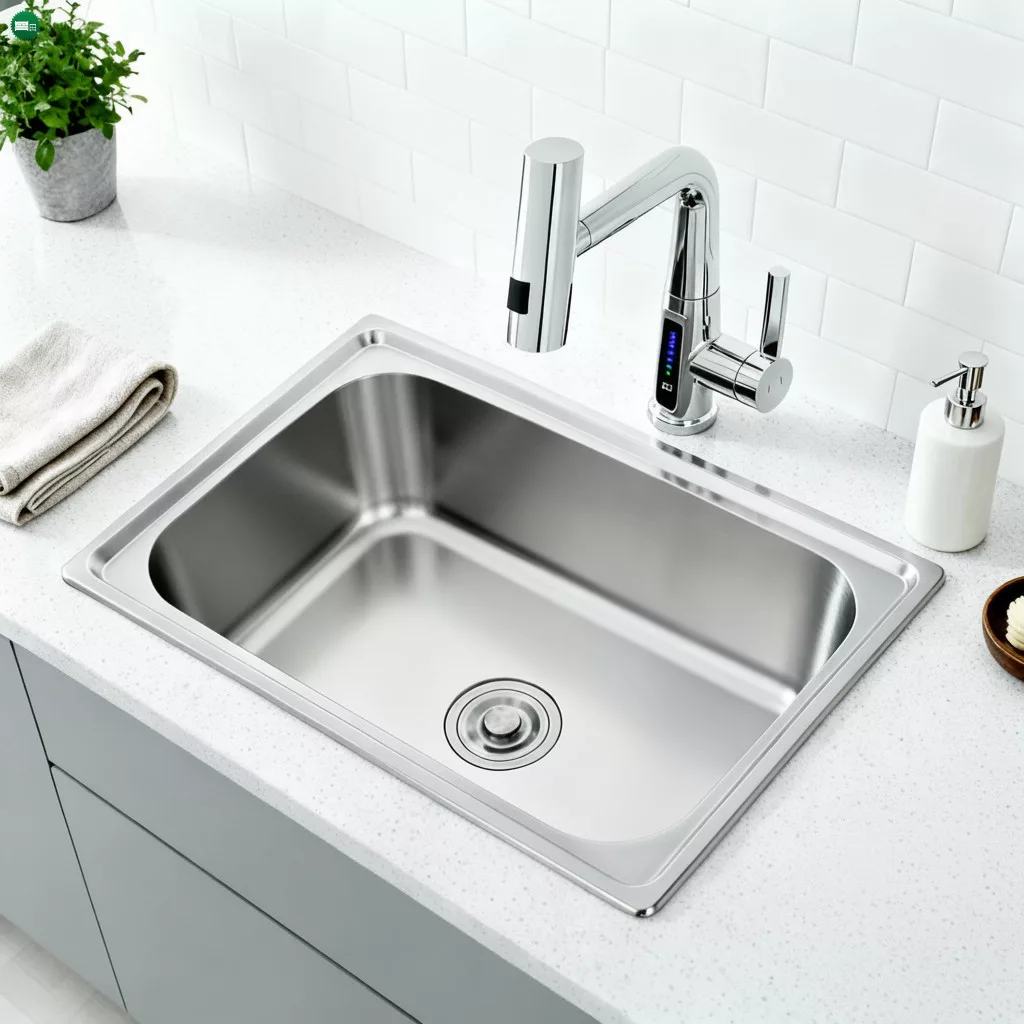 Az egy medencés kialakítás lehetővé teszi az alapanyagok hatékony mosását és előkészítését. A nagy méretű medence ideális a nagyobb edények és serpenyők mosásához, miközben a szögletes kialakítás praktikussá teszi a mosogatót.