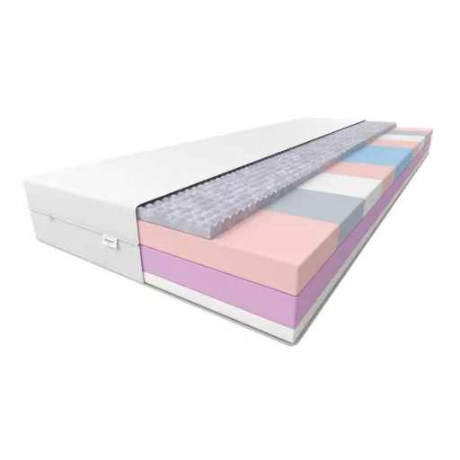 A matrac KÉTOLDALAS . A két felület használatának lehetősége jelentősen meghosszabbítja élettartamát.A matrac HR zónaréteget használ , amely nagy rugalmasságú habok és fokozott keménységű habok kombinálásával készült. A 9 keménységi zónából álló terület olyan megoldás, amely lehetővé teszi a felhasználó alakjához való tökéletes alkalmazkodást A matrac fokozott keménységű habszivacsból készült, aktívan stabilizáló réteggel rendelkezik , amely szerkezetének köszönhetően garantálja az optimális egyensúlyt és a hosszú távú tartósságot. teljes szerkezet. Az egyik oldalon, a felső rétegen nagy rugalmasságú habot használtak , amely ellenáll a deformációnak, rugalmas és dinamikusan reagál a terhelés eltávolítása után. Az RLK hab szerkezete aktív szellőzést garantál a matrac belsejében, csökkentve a túlzott izzadás problémáját. A másik oldalon megnövelt keménységű habot használtak a gyártás során , amelyet nagy rugalmasság jellemez. A felület megfelelő tartást biztosít a gerincnek. A matracban felhasznált anyagok hipoallergének, megfelelő környezetet biztosítanak az allergiásoknak.