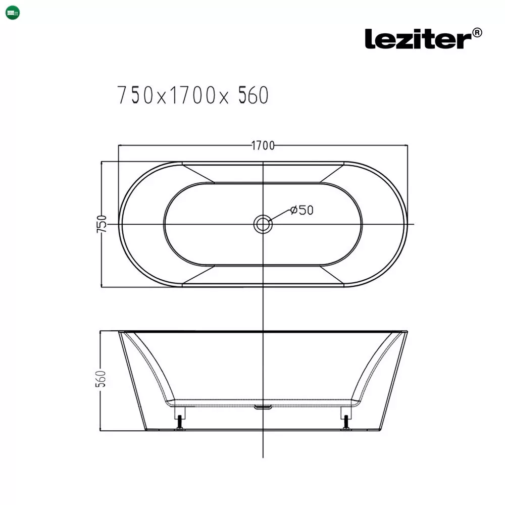 A Leziter Noa szabadon álló fürdőkád elegáns fekete külsővel, kényelmes ergonomikus kialakítással és tartós akril szerkezettel ideális választás modern fürdőszobákba.
