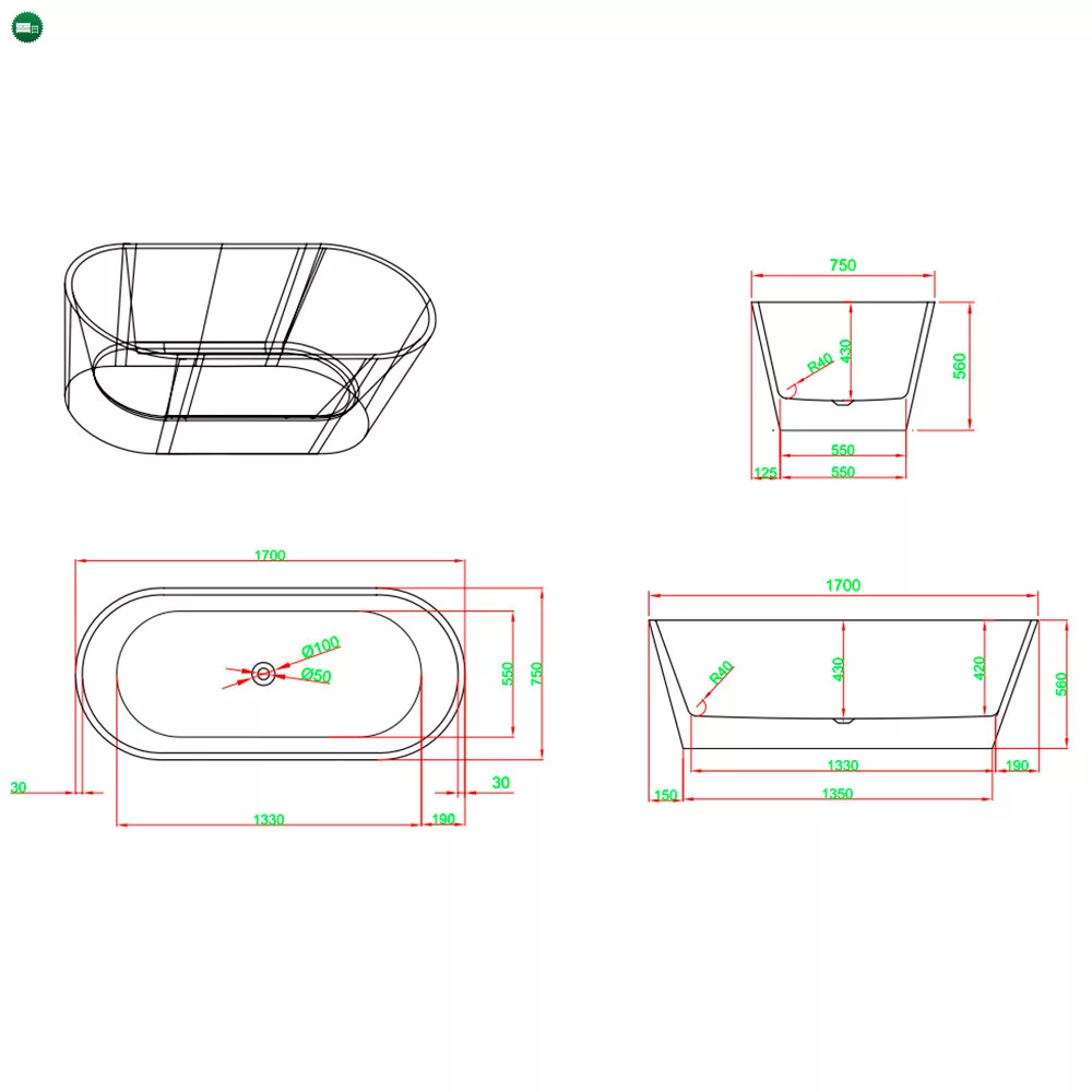 - Anyag: akril fürdőkád