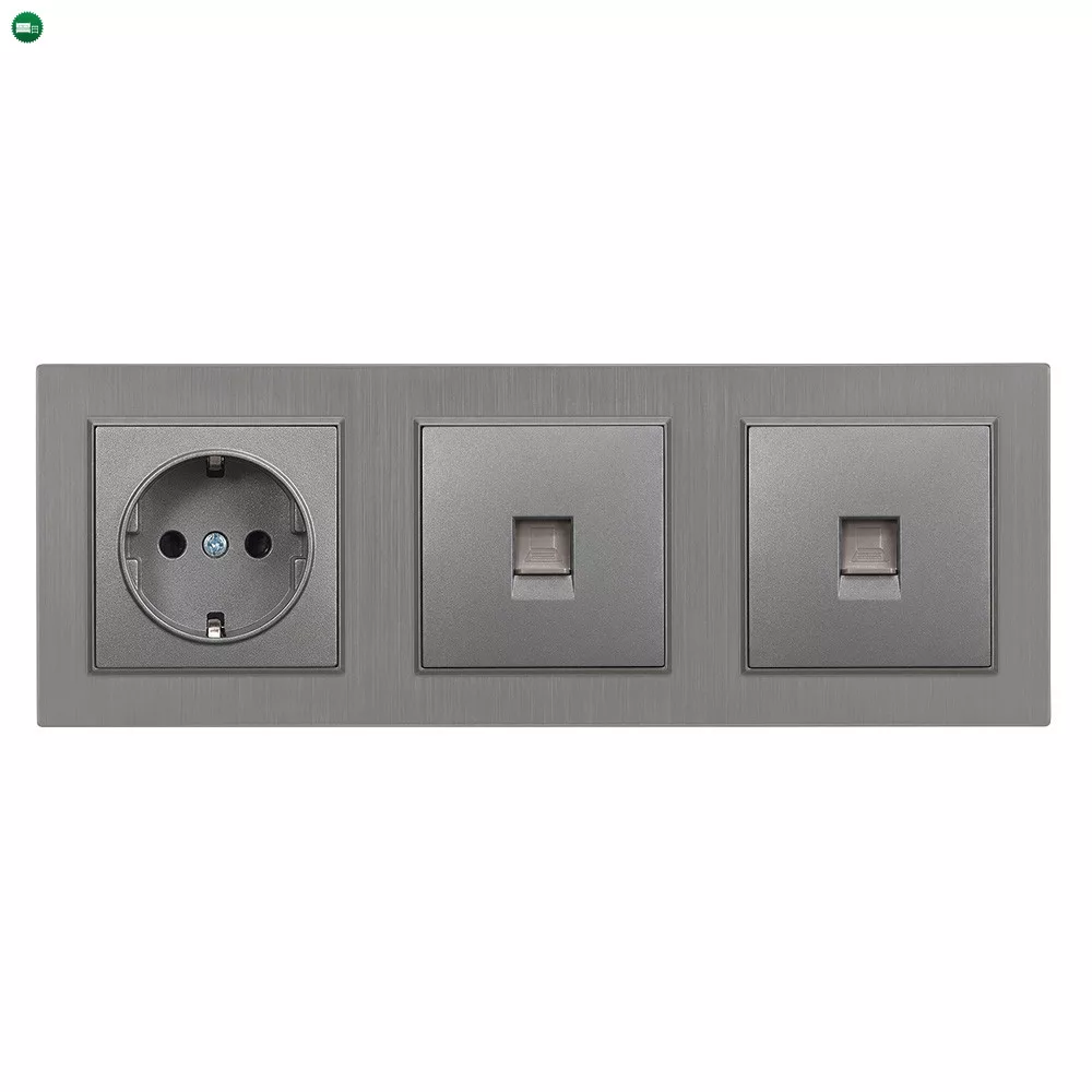- Csatlakozók: 1 × földelt dugalj (2P+F, F típus / Schuko), 2 × RJ-45 (8P8C) aljzat, Cat5e kompatibilis