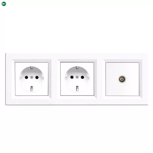 A Nova III kettő földelt csatlakozóaljzat TV csatlakozóval egy praktikus, helytakarékos megoldás, amely egyetlen szerelvényben biztosítja két elektromos készülék biztonságos áramellátását és egy televízió vagy beltéri egység stabil jelcsatlakoztatását. A földelt aljzatok 16 A névleges áramerősséggel és 250 V AC feszültséggel működnek, alkalmasak háztartási és irodai eszközök, valamint nagyobb teljesítményű fogyasztók, például konyhai gépek, számítástechnikai berendezések számára. A koaxiális RF TV aljzat megbízható, zavarmentes jelátvitelt biztosít, ezáltal kiváló kép- és hangminőséget nyújt.