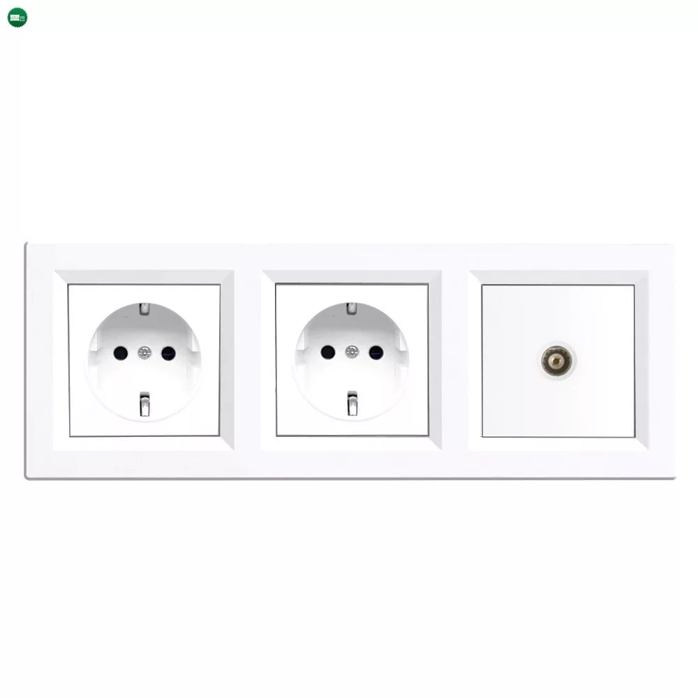 • Típus: Kettős földelt csatlakozóaljzat (dugalj) 2P+F, F típus + 1 × TV RF csatlakozó