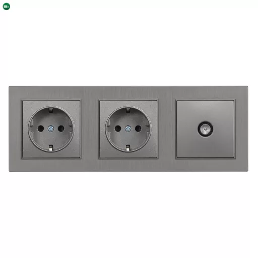 A Nova III kettő földelt csatlakozóaljzat TV csatlakozóval egy praktikus, helytakarékos megoldás, amely egyetlen szerelvényben biztosítja két elektromos készülék biztonságos áramellátását és egy televízió vagy beltéri egység stabil jelcsatlakoztatását. A földelt aljzatok 16 A névleges áramerősséggel és 250 V AC feszültséggel működnek, alkalmasak háztartási és irodai eszközök, valamint nagyobb teljesítményű fogyasztók, például konyhai gépek, számítástechnikai berendezések számára. A koaxiális RF TV aljzat megbízható, zavarmentes jelátvitelt biztosít, ezáltal kiváló kép- és hangminőséget nyújt.