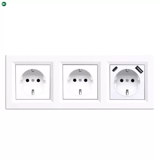 A Nova III kettő földelt csatlakozóaljzat USB csatlakozóval praktikus megoldás, amely egyesíti a hagyományos 230 V-os áramellátást és a közvetlen USB töltés lehetőségét. A földelt dugaljak 16 A névleges áramerősséggel és 250 V AC feszültséggel működnek, így alkalmasak háztartási és irodai eszközök biztonságos csatlakoztatására, beleértve a nagyobb teljesítményű fogyasztókat is. A beépített USB-A és USB-C portok összesen legfeljebb 2A kimeneti áramerősséget biztosítanak, így ideálisak kisebb fogyasztású eszközök – például okostelefonok, okosórák, fülhallgatók – töltésére külön adapter használata nélkül.
